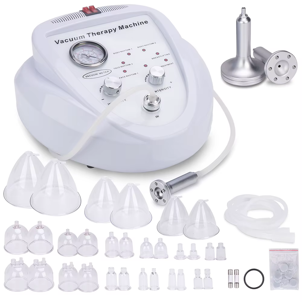 • Stimulates skin and muscles using suction therapy. Enhances circulation, lifts tissues, and supports contouring and detox effects.