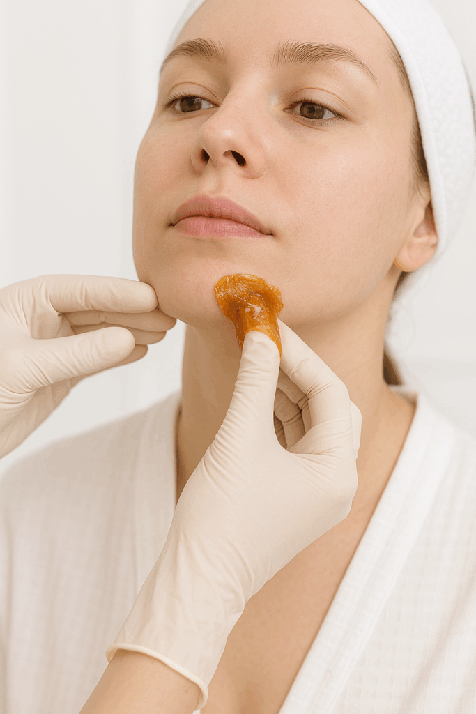 • Shapes and defines the brows with precision. Whether cleaning up or sculpting, sugaring gives perfect lines and a symmetrical, fresh appearance.